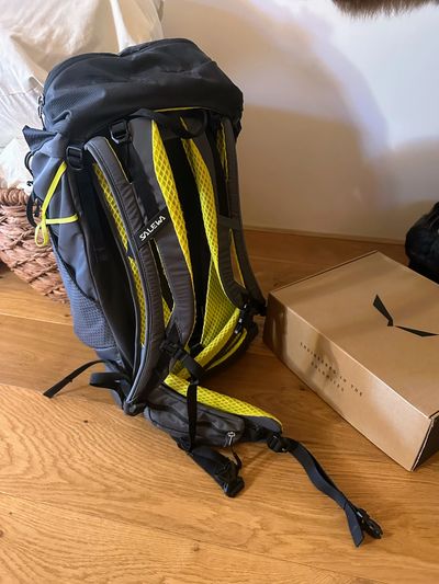 The Salewa fixes that. Its Dry Back system is hands-down the best I’ve ever used. Sturdy, breathable, and spacious. Combine it with my Excape jacket and everything just works together, like proper symbiosis. Or synergy, if you’re Jack Donaghy.